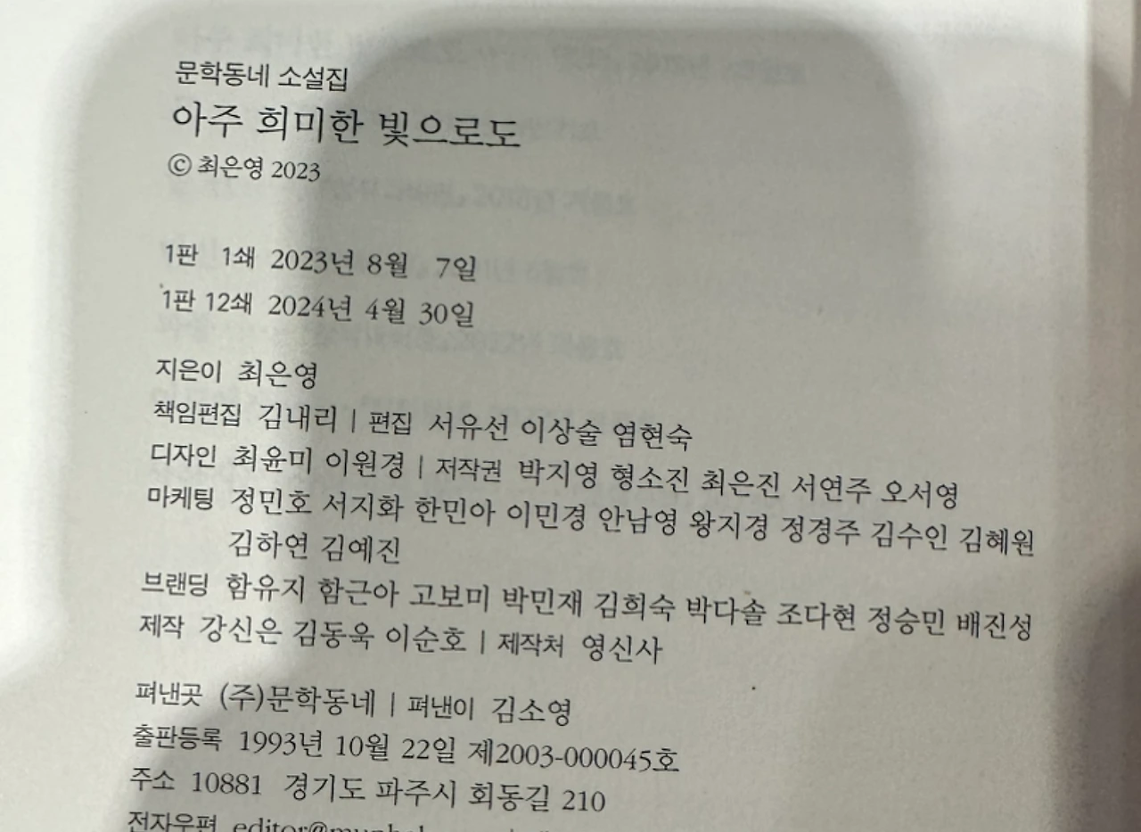 최은영 작가님의 『아주 희미한 빛으로도』.