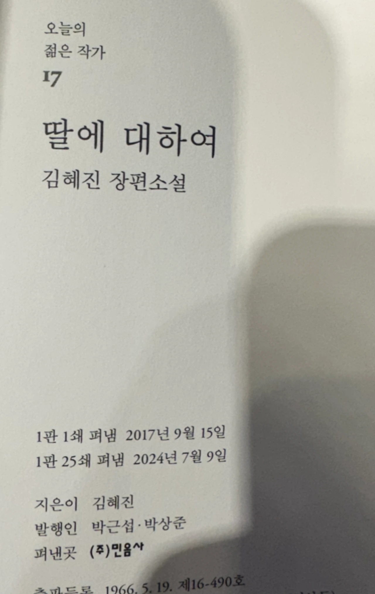 김혜진 작가님의 『딸에 대하여』. 이 책은 제목만 봐도 이미 무거운 주제를 던진다.