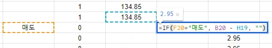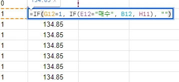 저는 이 수식이 특히 마음에 듭니다. 이 방식은 매수한 후 가격을 자동으로 다음 셀에 복사해 주기 때문에, 매수와 매도 가격을 따로 추출해 다시 작업할 필요가 없습니다. 덕분에 차익 계산이 매우 간편해졌습니다.