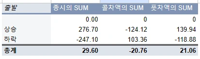최종 합계: 콜옵션의 수익과 풋옵션의 손실을 상쇄한 결과, 순손익은 거의 0에 수렴.