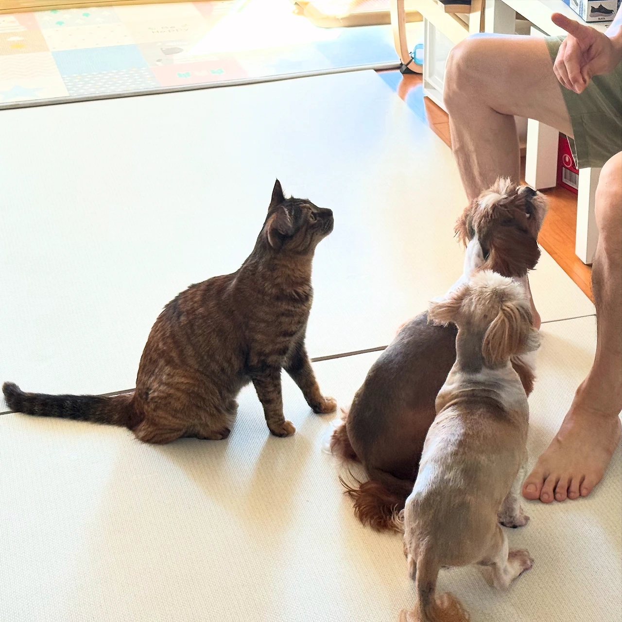세상엔 이런 모양새로 우당탕탕 살아가는 가족도 있고, 저런 사연으로 삐걱대며 굴러가는 집안도 있다. 생각이 거기에 미치니 홀가분해졌다. 맞다. 인테리어 사장님의 말처럼 우리 집은 짐승이 많은 집이다. 사람보다 짐승이 더 많다. 개와 고양이를 빼놓고는 설명할 수도 없는, 하이브리드 가족이랄까. 네 발 달린 가족구성원들 덕분에 J와 나는 우리 각자의 부족했던 지점-배려심이나 준비성 같은-에 대해 깨닫고 모자란 구석을 채우며 산다. J와 나 모두 어딘가 조금씩 부족한 인간이건만 그런 우리의 존재만으로도 행복해하는, 털뭉치 친구들이 주는 사랑을 흠뻑 누리고 산다. 그거면 충분하지 않은가.