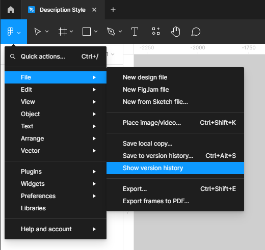 좌측 상단 피그마 아이콘 > File > Show version history 탭을 클릭하면 버전 관리 페이지로 진입한다.
