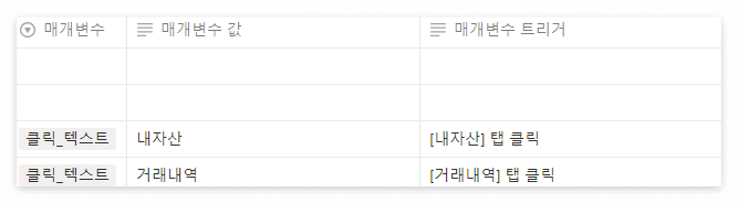 "해당 매개변수 값이 노출되려면 어떤 행동을 취해야 하는지"를 매개변수 트리거에 작성했다.