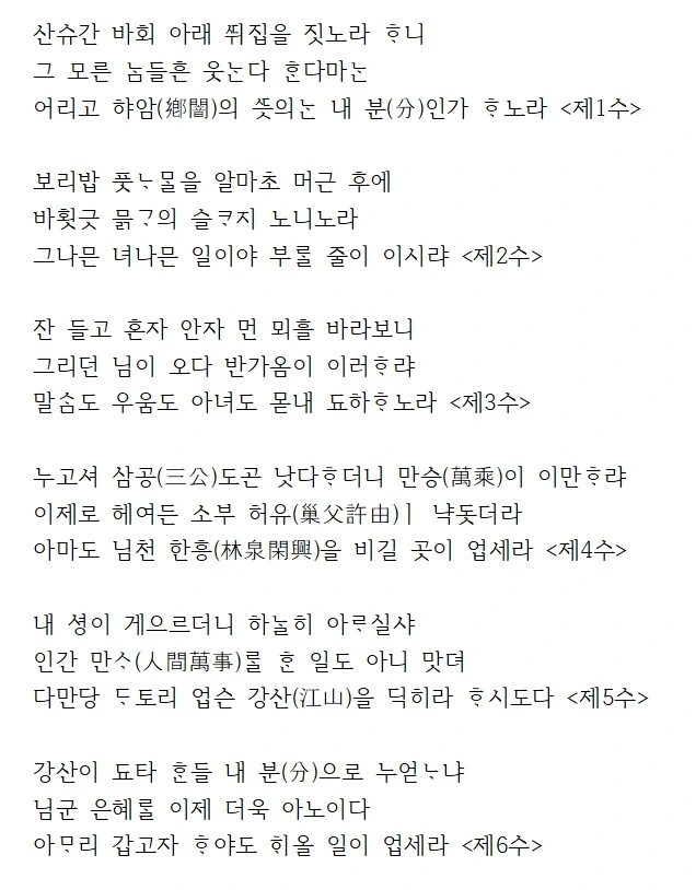 고산 윤선도의 <만흥漫興>을 보면