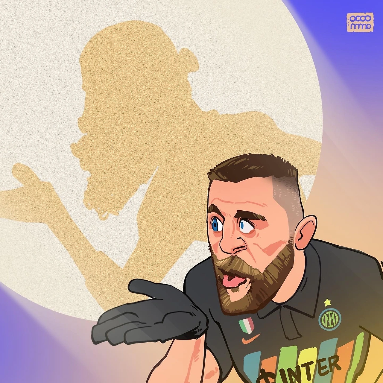 인터밀란의 수비수인 그는 뛰어올랐고 골망을 갈랐다