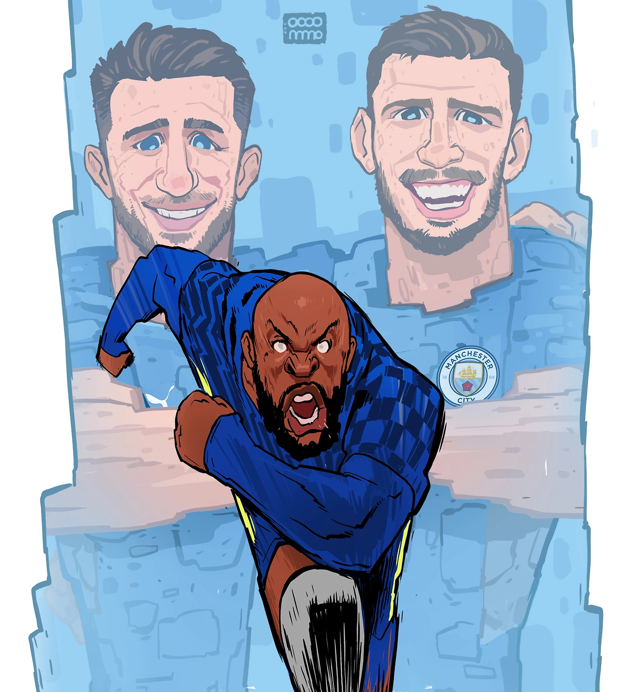 첼시의 최전방은 예상대로 고액으로 이적한 루카쿠였고 맨시티의 최종수비는 오랜만에 복귀한 스톤스와 라포르테였다