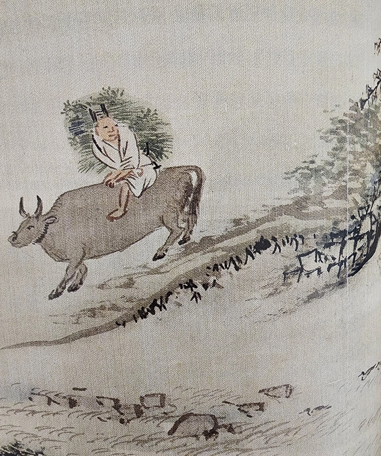 반면 <기우부신>의 경우 앞서 말한 그림과는 달리 한 아이가 지게를 등에 진 뒤 소를 타고 돌아가는 모습을 묘사했다. 아이는 무거운 지게를 소 등에 얹어놓지 않고 본인이 지고 간다. 이는 예로부터 농부들에게 소는 또 하나의 가족임과 동시에 이들이 노동하게 도와주는 수단이다.
