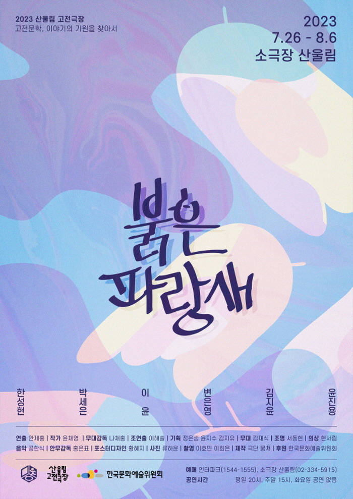 2023년 7.26-8.6일까지 소극장 산울림에서 진행하는 연극 <붉은 파랑새>는 어른이 된 틸틸이 과거에 경험했던 환상 세계로 다시 모험을 떠나는 이야기를 담았다.