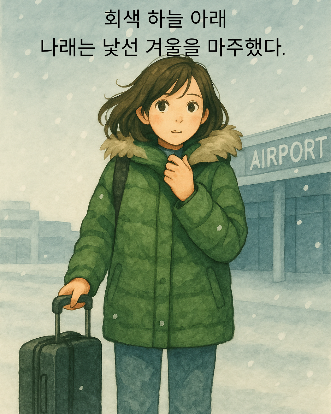 그녀의 키보다 높게 쌓인 눈으로 뒤덮여 있었다.
