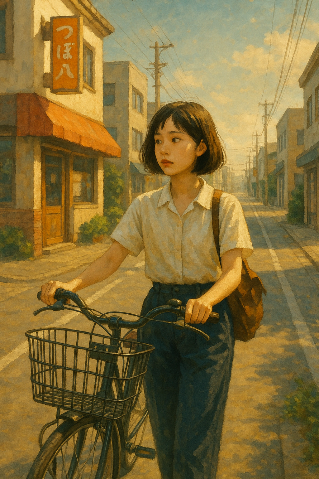나래는 학교에서 선물 받은 자전거를 타고 후카가와 거리를 천천히 돌기 시작했다.