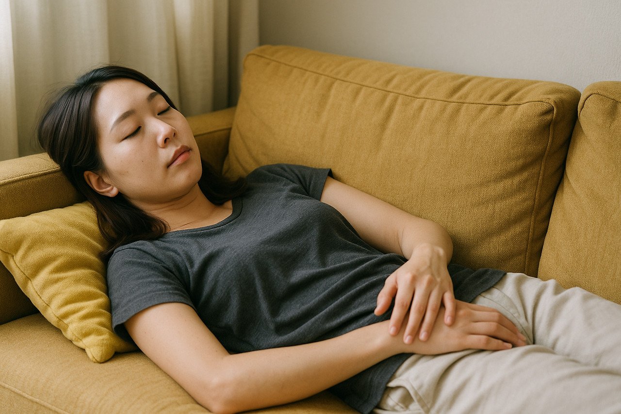 나래는 지친 몸을 소파에 맡겼다.