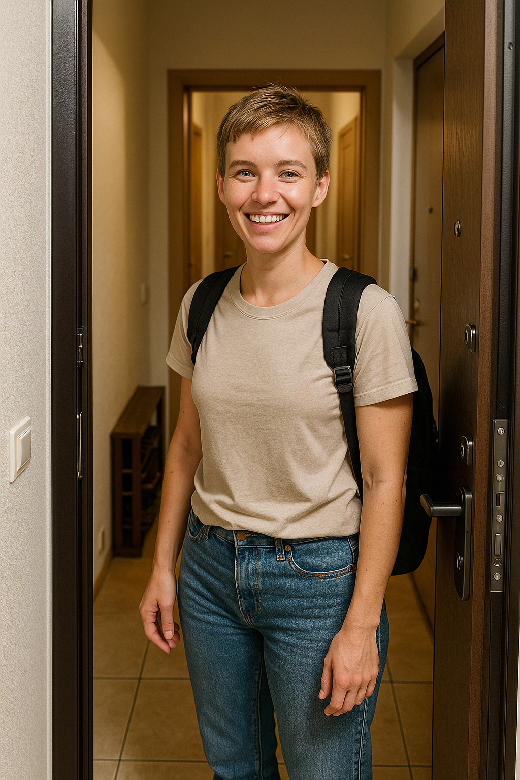 그녀는 이삿짐을 나르다 나래를 발견하자 두 팔을 흔들며 다가왔다.