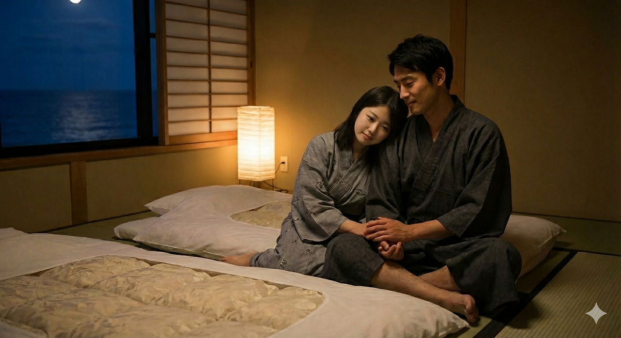 밤이 깊어지자 나래는 조용히 유카타로 갈아입었다.