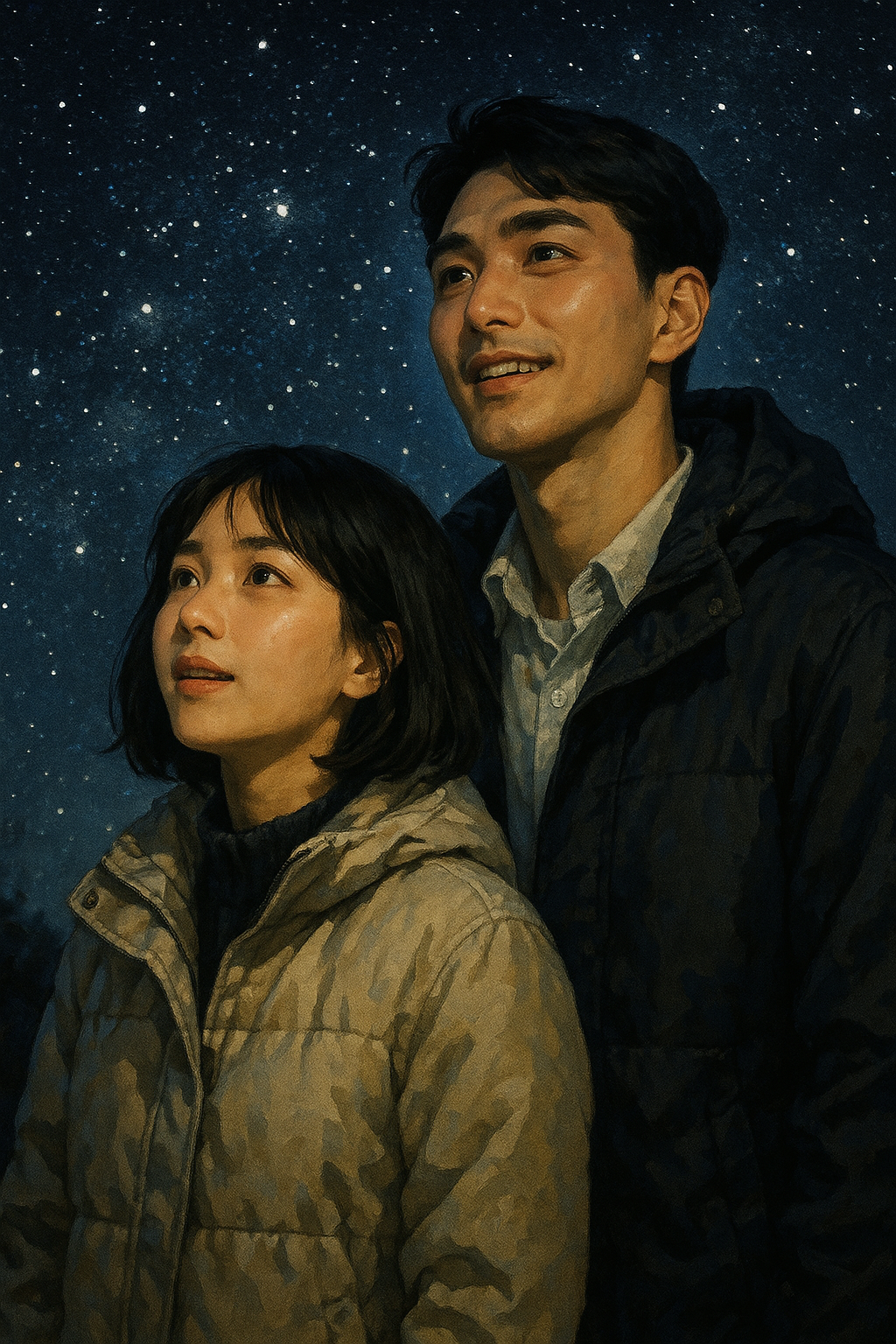 별이 쏟아질 것 같은 하늘이라는 말을 이럴 때 쓰는 걸까? 나래는 온통 하늘을 하얗게 뒤덮은 별들을 바라보았다. 그리고 나래 옆에 서 있는 소에다의 옆모습을 슬쩍 바라보았다.