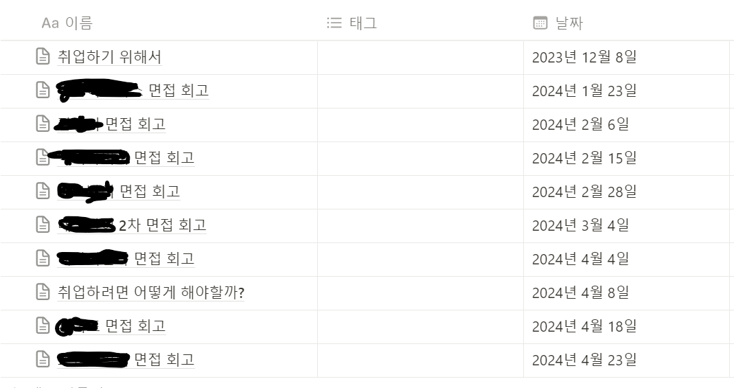 대학 졸업 후엔 총 8번의 면접을 봤다. 위 그림엔 없는 면접도 하나 더 있다 그럼 9번이다.