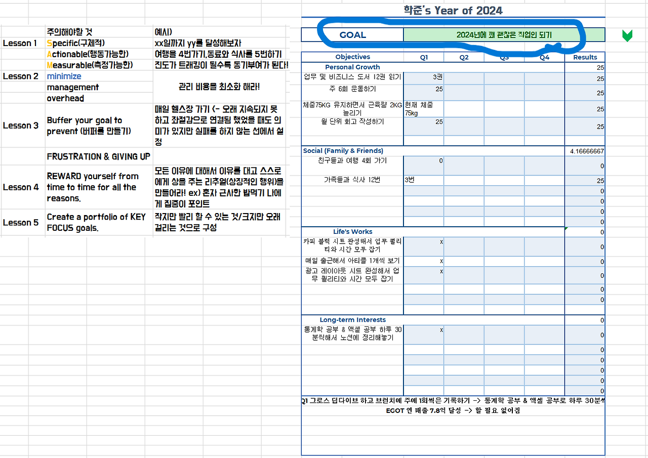 24년 목표는 끝이 나서 마음이 홀가분하고 이제 회사생활만 잘하면 되지만 어차피 상상하는 대로 이루어지는 세상이라면 조금 더 큰 꿈을 꿔야겠다고 생각이 들었다.