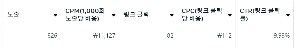 리뷰 콘텐츠를 만들어서 광고를 바꿔서 게시했고 이번엔 10% 가까이 나온다.