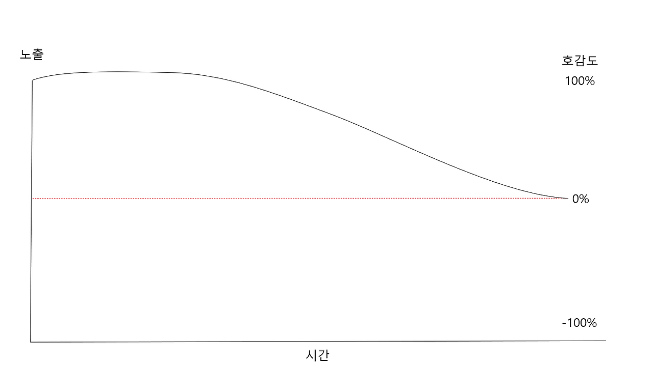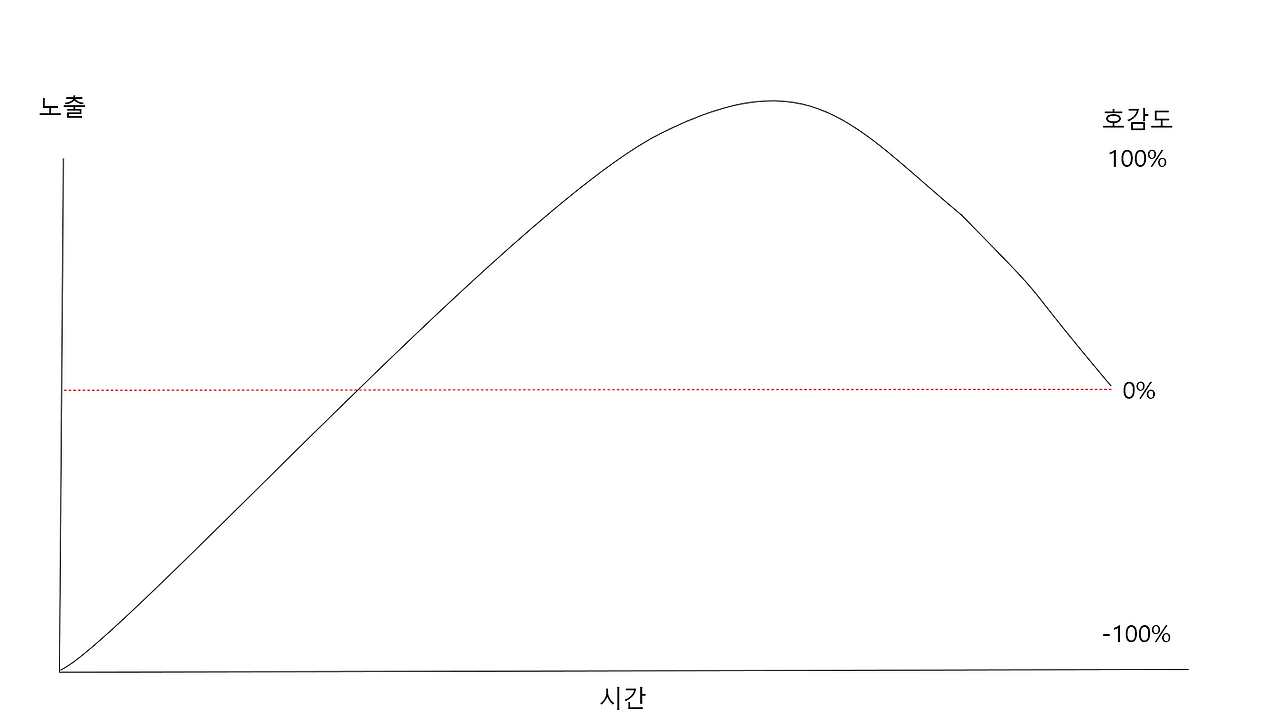 세상에 나를 노출시켜야 한다. 무엇을 하던 상관없이 세상에 나를 적극적으로 노출시켜야 한다. 노출량과 호감도의 관계는 아래 그래프와 같다.