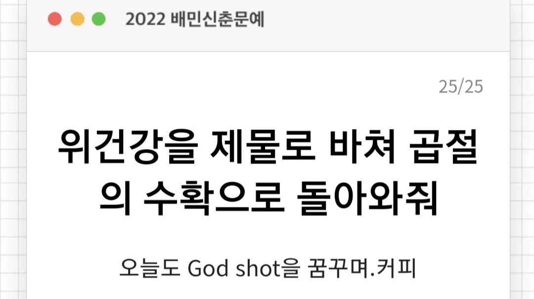 <제목: God shot을 꿈꾸며>
