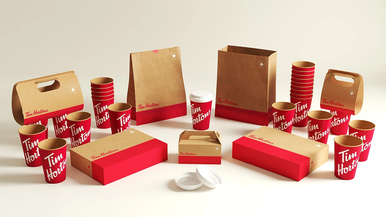 : 테이크아웃 서비스를 제공하는 요식업계는 기존 플라스틱 포장재 대체를 위해 종이, 섬유 등의 대안 소재를 적극적으로 도입하고 있다. 대표 사례로는 최근 우리나라에도 들어온 커피&도넛 맛집 '팀 홀튼'이 있다. '팀 홀튼'은 2022년 말부터 테스트 기간을 거쳐 플라스틱 일회용품을 종이와 섬유 소재의 식기류, 용기, 컵 뚜껑 등으로 교체하고 있다.