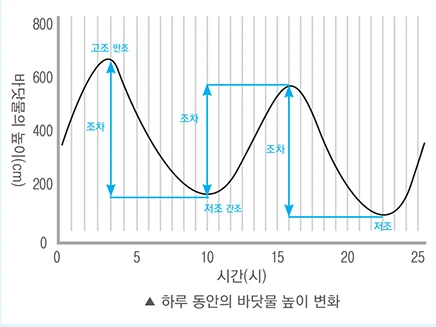 우리나라는 바닷물이 하루에 두 번씩 올라갔다 내려갔다 한다. 밀물 때 바닷물이 밀려와 해수면이 가장 높아졌을 때를 '만조', 반대로 썰물 때 바닷물이 빠져나가 해수면이 가장 낮아졌을 때를 '간조'라고 한다.