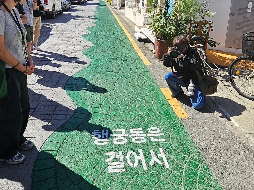다 같이 골목을 둘러보며 이곳의 특별함은 무엇 일지에 대해 계속 생각해 보았다. 행궁동 마을은 보도와 차도 간 단차가 없고, 직선이 아닌 구불구불한 도로로 이루어져 있었다. 이는 보행자가 걷기 좋고, 도심 내 차량 속도를 줄여주는 효과가 있다고 했다.