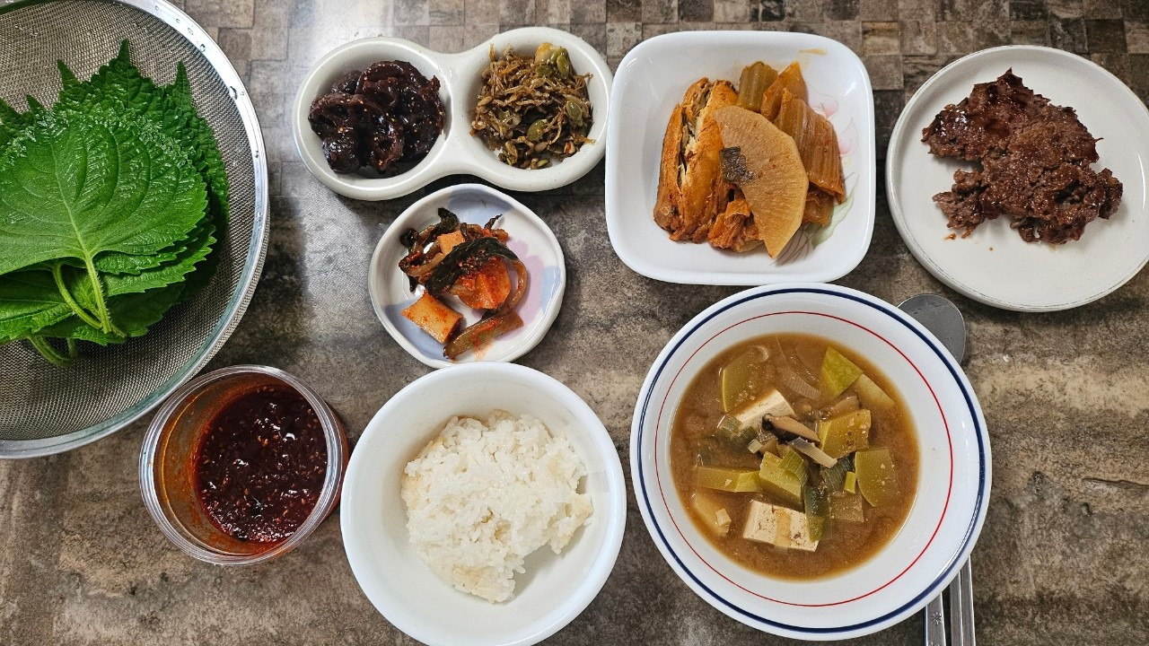 고등어김치조림에 된장국, 깻잎쌈을 올렸다. 그리고 멸치견과조림. 엄마는 이걸 먹고 골다공증이 나았다며 떨어질 만하면 해다 주신다. 아마도 그 덕에 암 수술도 큰 후유증 없이 버틸 수 있었을 것이다. 우리 집은 오래전부터 믿어왔다. 일상에 오르는 밥상, 그것이 곧 보약이라고. 그래서 나는 오늘도 밥상에서, 잃었던 삶의 체온을 되찾는다.