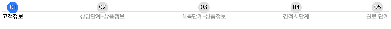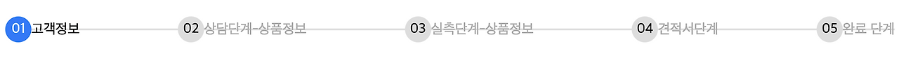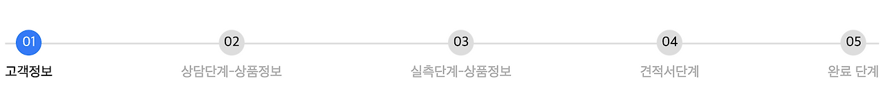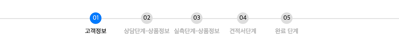 1) 고객정보 2) 상담단계-상품정보 3) 실측단계-상품정보 4) 견적서단계 5) 완료 단계를 HTML로 만들어줘 그리고 현재 고객이 어디에 위치해 있는지 표시할 수 있도록 활성화된 단계에는 파란색으로 표시할 수 있게 CSS를 만들어줘 각 단계 디자인은 모든 단계가 가로 한 줄로 표시되며 각 단계별로 column이 일정했으면 좋겠어 그리고 단계별로 숫자를 표시하고 원으로 표시되었으면 좋겠어, 그리고 원 중간으로 통과하는 선도 하나 있으면 좋을 것 같아"