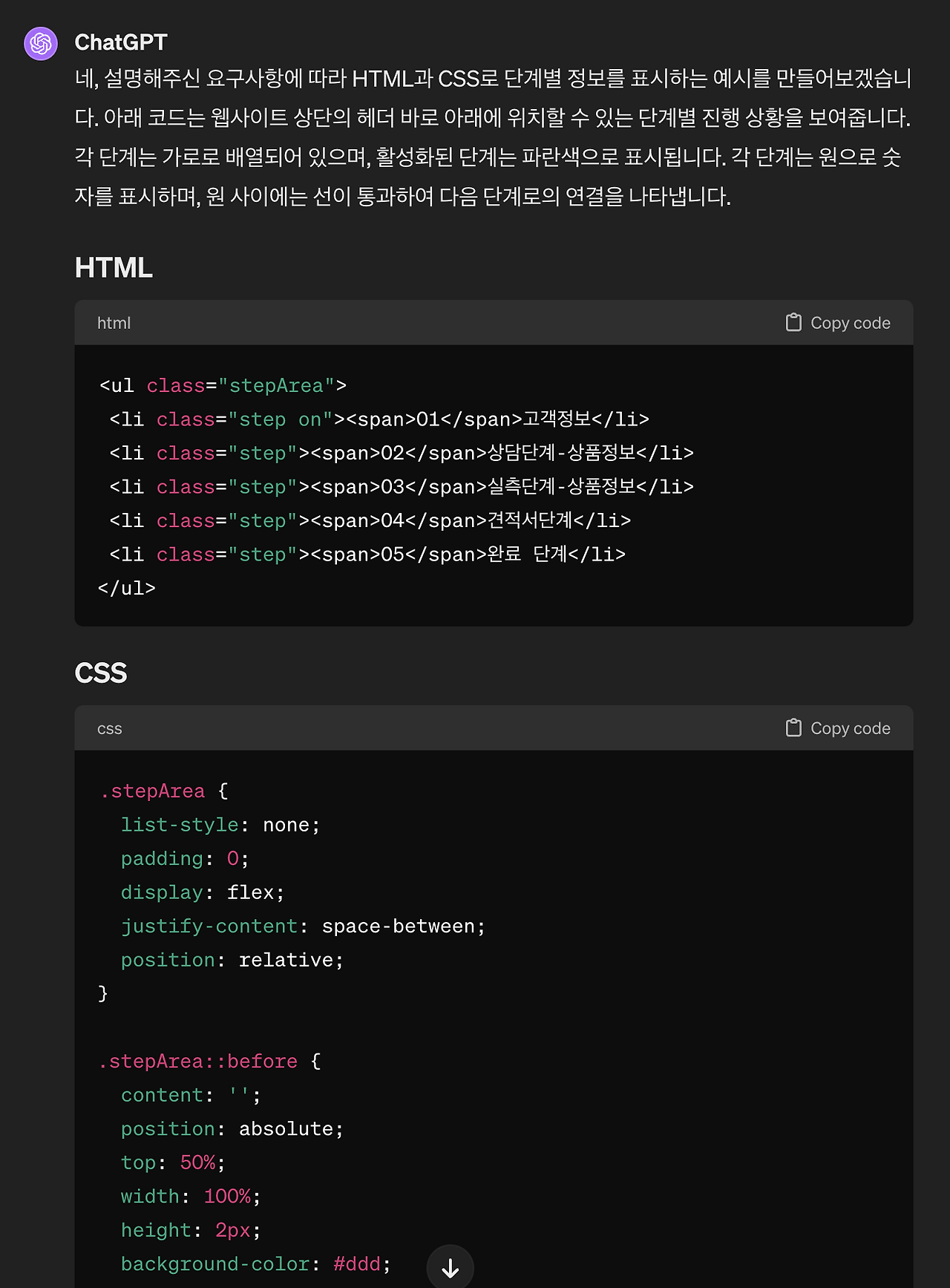 위와 같이 프론트 화면코딩이 챗GPT를 통해 완성되었습니다.