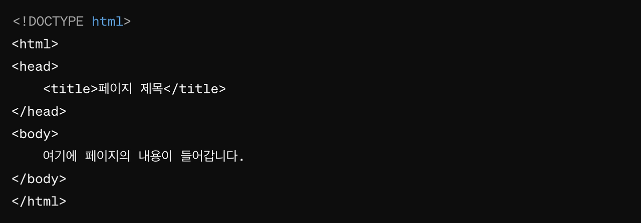 HTML 문서는 기본적으로 다음과 같은 구조를 갖습니다: