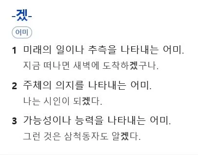△ '-겠-'은 말하는 사람의 추측, 의지, 가능성을 나타낸다.