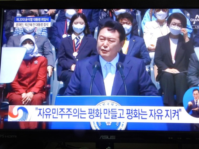 16분 남짓한 3340字의 취임사를 듣고 읽으며, 제가 고개를 갸우뚱한 첫 번째 부분은 각국 귀빈과 경축 사절을 일일이 호명하는 데에만 약 480字를 할애했다는 점입니다. 단순 비율로 14%나 됩니다. 반면 박근혜 대통령 취임사의 경우에는 3%, 문재인 대통령은 1%에 불과합니다. 이전에는 중요하게 다루지 않던 ‘세계 시민’이라는 새로운 개념이 처음 언급되면서 부연 설명이 주렁주렁 덧붙었고, 이 때문에 글머리가 비대해진 것으로 보입니다. 물론 이 외에도 그럴 만한 실무적 이유와 남다른 고충이 있었으리라 짐작해볼 뿐입니다.