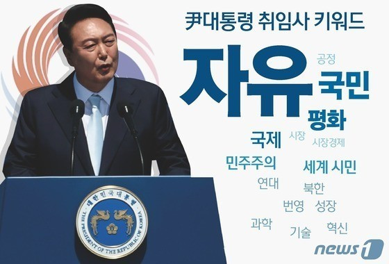 김동조 연설비서관의 가장 중요한 업무는 지난 5월 10일의 취임사가 아니었을까 생각합니다. 첫 번째 대국민 메시지인 만큼, 취임사에는 그 어떤 글보다 노력과 수고가 많이 들어가게 마련이니까요. 여기에는 대통령의 평소 생각과 가치관, 그리고 말 습관이 오롯이 담겨있습니다. 그 자체가 향후 5년간의 국정운영 방향이자 국가 어젠다라고 봐도 무방해 보입니다. 실제로 윤석열 대통령의 취임사는 김 비서관이 작성한 초안을 윤 대통령이 직접 고치며 어렵게 완성했다고 전해집니다.
