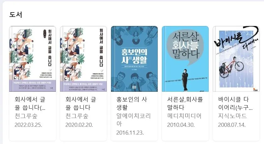 직업적으로 글을 가깝게 한 덕에 ‘회사에서 글 쓰는’ 월급쟁이로 살면서 운 좋게도 몇 권의 책을 썼습니다. <회사에서 글을 씁니다(‘20)>와 <홍보인의 사생활(’16)>은 밥벌이에 대한 넋두리고, <서른 살, 회사를 말하다(‘10)>는 직장에 대한 애증과 푸념이며, <바이시클 다이어리(’08)>는 젊은 날의 혼돈과 몸부림입니다.