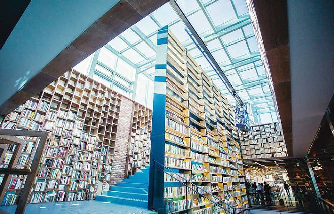 풍경을 보는 게 슬슬 지겨워진다면, 북파크에 올라가 보세요. 여길 그냥 동네 책방으로 생각하고 들어가셨다가는, 큰 충격을 받으실 수도 있습니다. 들어가자마자 1층부터 3층 꼭대기까지 가득 채운 책장과 마주하게 됩니다. 5만여 권이 조금 넘는다고 하는데, 마치 시대를 거슬러온 거대한 벽 같습니다. 이동진이 그의 책 <이동진 독서법>에서 부러워한 ‘다치바나 다카시의 서재’가 이런 느낌일까요. 다치바다 다카시의 서재에는 지하 2층부터 지상 3층, 그리고 옥상까지 20만여 권의 책이 가득 차 있다고 합니다. 그곳에 가기 어렵다면, 아쉬운 대로 여기 오시는 것도 좋은 방법입니다.