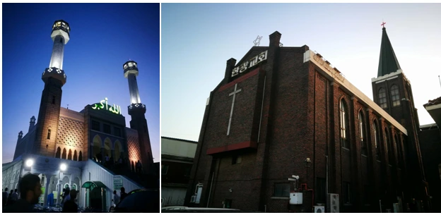 한남동에는 보살과 선녀라고 간판을 단 유명한 점(占)집도 많습니다. 순천향병원 건너편 대사관로에 막 몰려 있는데, 아마도 하이야트 호텔 뒤부터 한남동 인근의 재벌가들을 VIP 고객으로 두는 것 같습니다. 궁금한 게 많으시겠죠. 제가 안까지 직접 들어가 보진 못했지만, 거긴 슬쩍 보기에도 잔디가 넓게 펼쳐져 있는 큰 집들이었습니다. 머리를 길게 땋은 남자 분들이나 화장을 짙게 한 여자 분들이 나오시는 걸 어릴 적 종종 봤습니다. 이렇게 적고보니 한남동은 정말 이상한 동네같아요. 에이, 뭐 꼭 그렇진 않아요. 안 그런 것도 아니지만요. 일단 놀러오세요. 아무튼 이곳에는 기독교와 카톨릭과 이슬람, 그리고 절과 무당과 민속신앙이 층을 달리하며 한 동네에 사이 좋게 살고 있답니다.