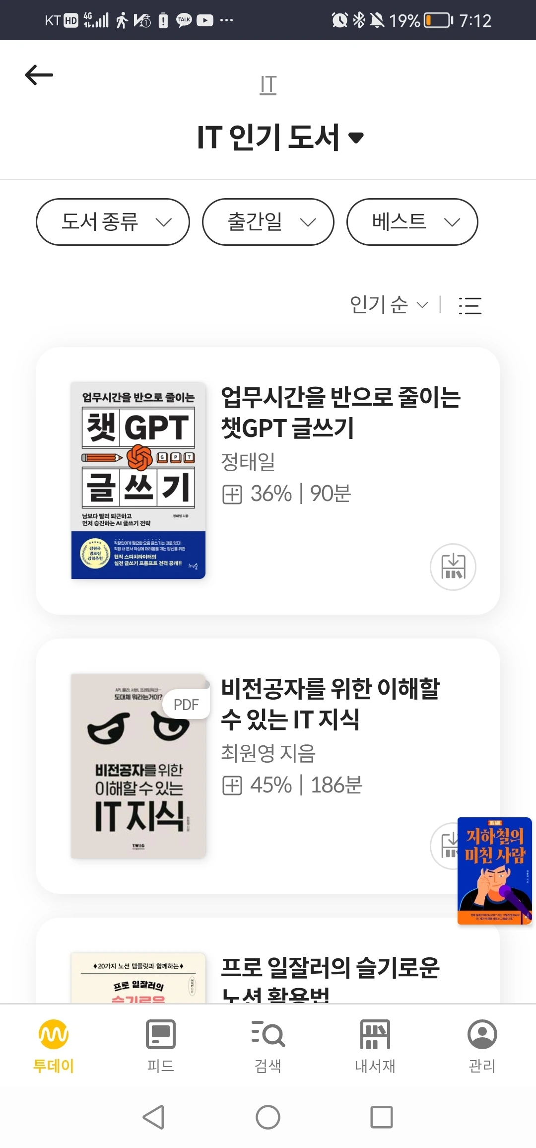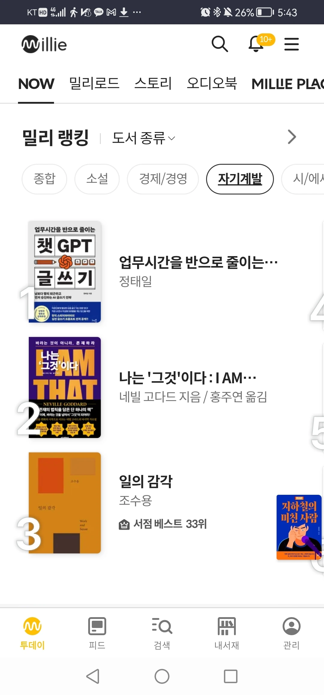 밀리서재 2개 분야 1위.