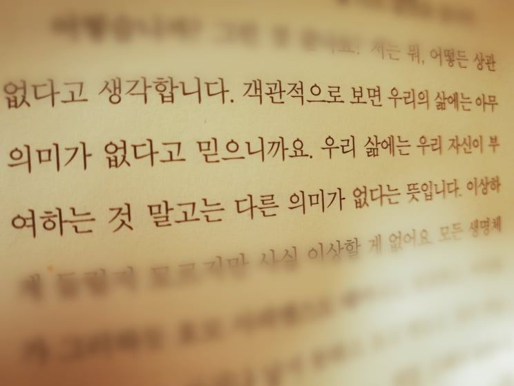 다행히 한 문장 더 들어가니, 부연설명이 바로 붙어 있습니다. “삶에는 우리 자신이 부여한 것 말고는 다른 의미가 없다.” 삶의 의미는 저절로 생겨나거나, 누가 만들어 줄 수 있는 게 아니란 뜻입니다. 우리가 거기에 필사적으로 의미를 부여해야 한다는 역설적인 이야기죠. 스스로 가치를 만들어내지 못하면 삶에는 코딱지만한 의미도 남지 않게 됩니다. 슬프지만 죽는 순간 펑, 하고 그냥 사라지고 마는 거죠. 흔적 하나 만들지 못하고 죽는 건 정말 싫은데, 도대체 뭘 어떻게 해야 할까요.