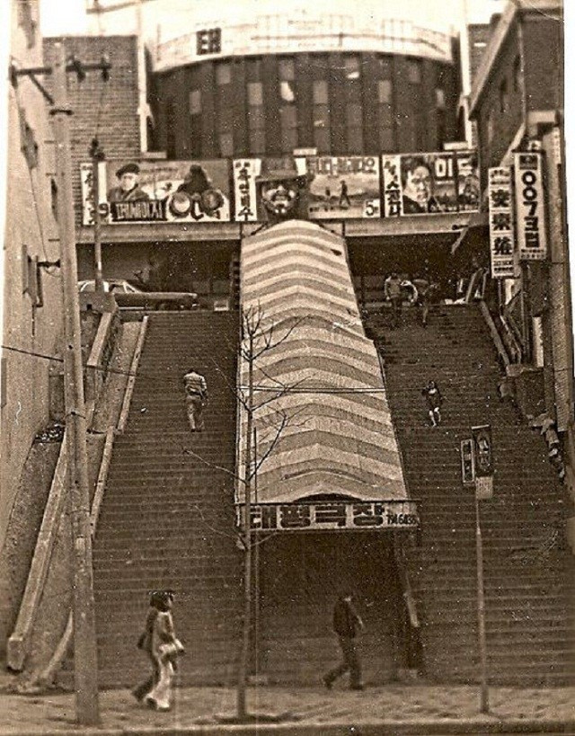 살펴보니 이곳 ‘이태원랜드’는 사연이 참 많더군요. 원래는 60년대 최고 인기를 누렸던 신성일씨가 소유한 ‘태평극장’이었는데 그 당시 이태원이 서울 변두리라 3류 취급을 받아 80년 11월경 폐업을 했다고 해요. 이후 80년대 중반 ‘한국 락의 아버지’라는 신중현씨가 인수해서 국내 최초의 헤비메탈 전용 공연장인 ‘Rock World'를 차렸다고 합니다. 시나위가 여기서 공연을 했다는데, 초기의 기대와는 달리 관객이 없어 6개월 만에 문을 닫았다고 합니다. 지금은 보다시피 찜질방으로 쓰고 있고요.