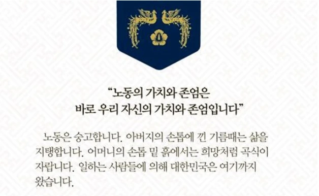 스피치라이터의 첫 번째 덕목은 ‘보통 수준 이상의 글쓰기 실력’입니다. 아름답게 쓰기보다는 정확하고 논리적으로 쓰는 게 중요합니다. 그런데 최근 청와대 말씀을 들으면서 생각을 조금 넓히게 됐습니다. 특히 ‘근로자의 날’ 메시지는 한 편의 시(詩)더라고요. 문학 수업시간에나 듣던 표현을 대통령의 입으로 듣게 될 줄이야. 시인 출신 신동호 연설비서관의 삶과 문재인 대통령의 진정성이 잘 합쳐진 덕분이라고 감히 말해봅니다.