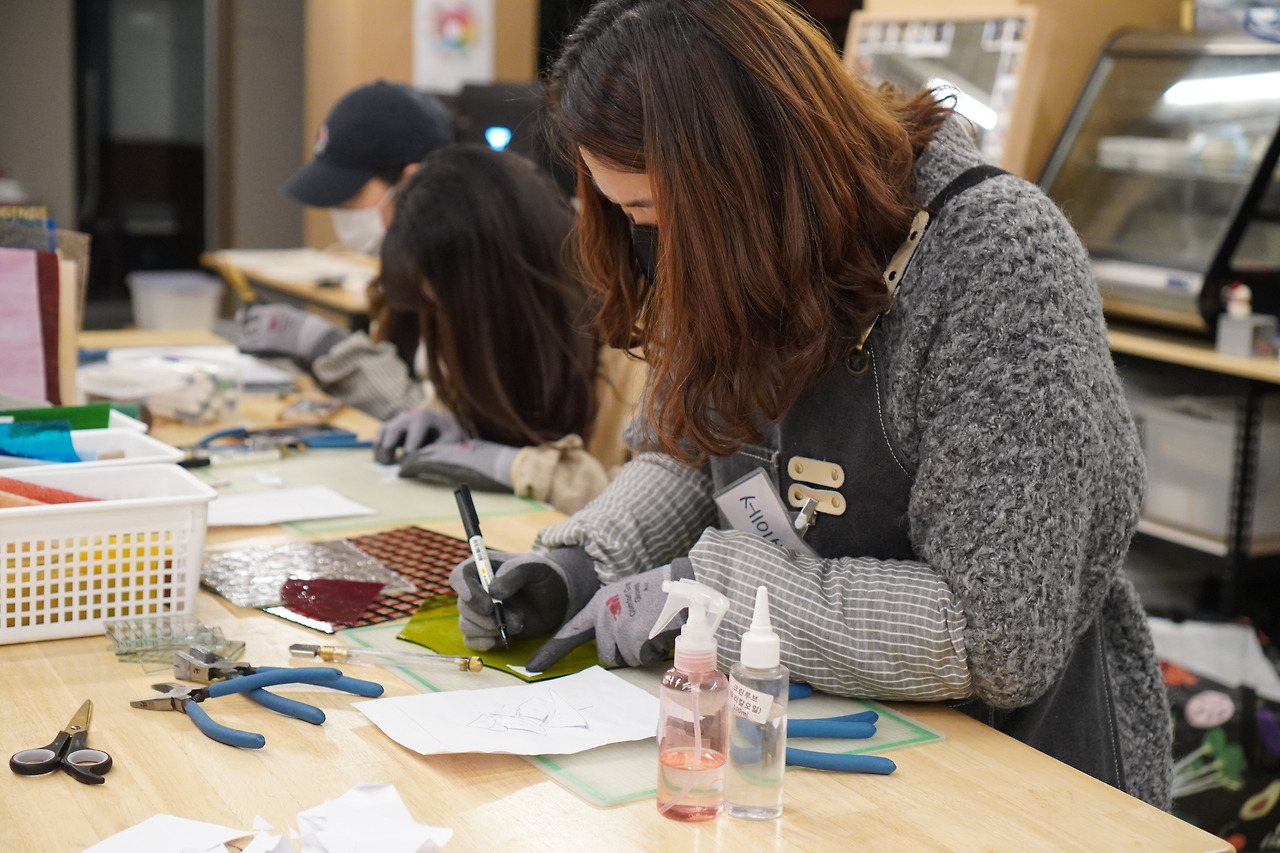 스테인드글라스에서 유리를 컷팅하는 방법은 여러 종류가 있어.