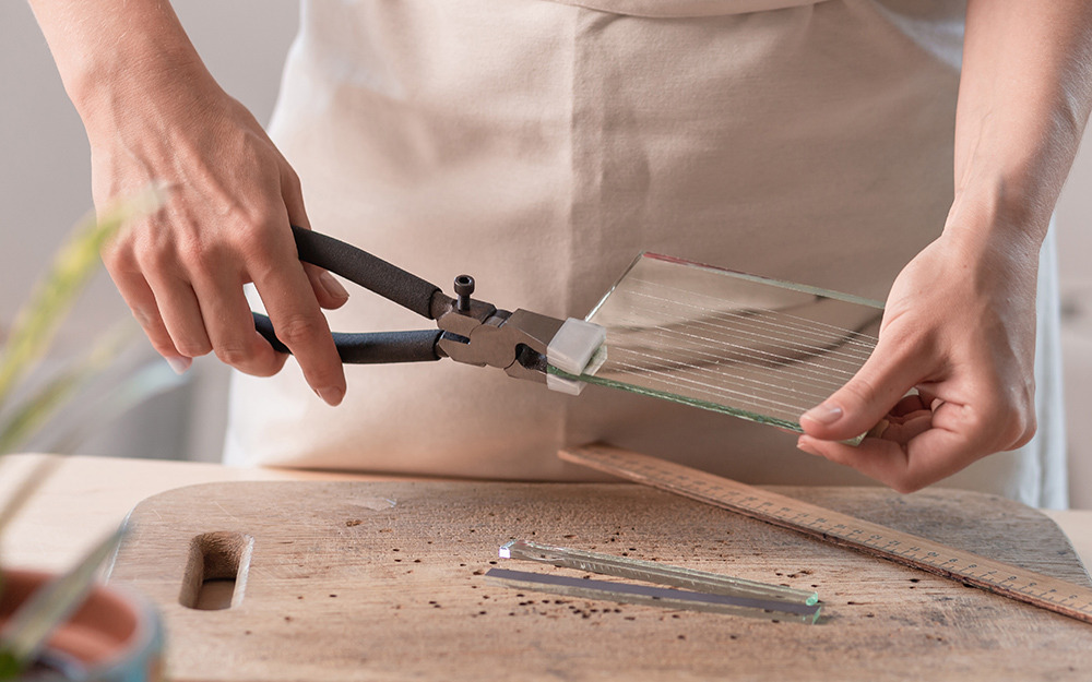 직선으로 유리를 자를 때는 자를 대고 잘라도 되고 짧은 길이라면 그냥 잘라서 앞서 재료와 도구 편에 설명한 메탈 러닝 플라이어로 잘라주면 돼. 곡선인 경우도 크게 다르지 않지만 유리칼로 곡선을 그어준 후에 유리칼의 뒷부분(보통 금속으로 되어있음)으로 반대면에서 유리를 그어준 길을 따라 '톡톡' 쳐주면 더욱 정교하게 잘리니 귀찮더라도 해보도록.