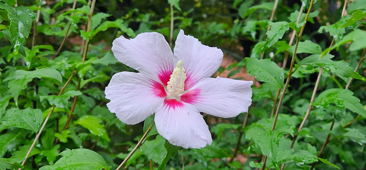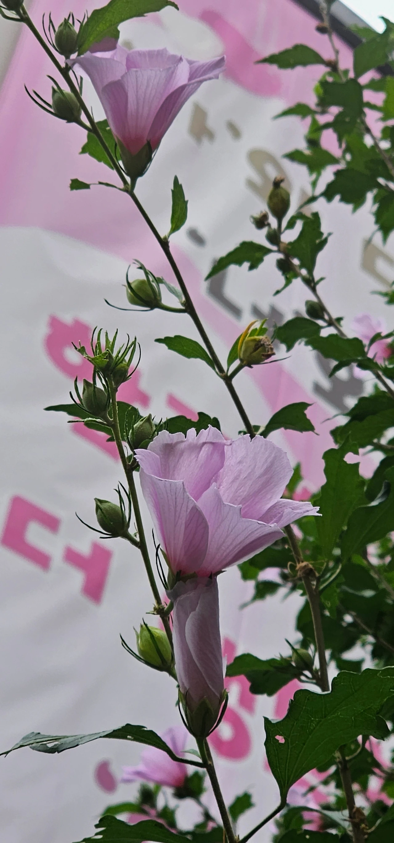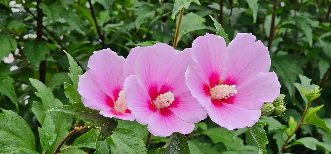 무궁화꽃이 이리 멋지고 당당한 줄 이제 알았어요. 우리나라 꽃의 기품이 느껴지죠. 저와 친한 동료 셋이 이 사진 속에도 들어 있네요.