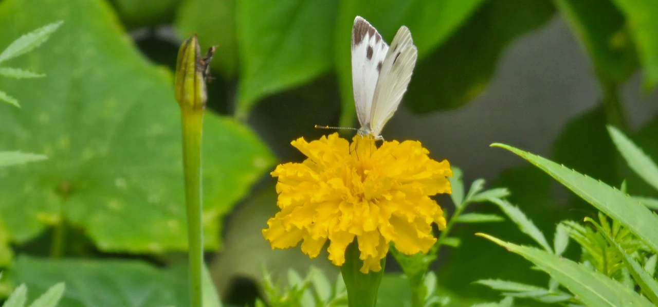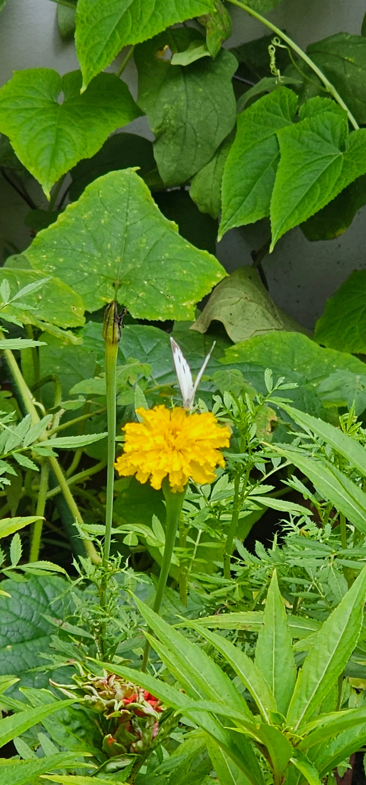 메리골드가 왜 메리골든지 키워보니 알겠네요. 나비도 이 찬란한 골드색을 좋아하나 봐요.