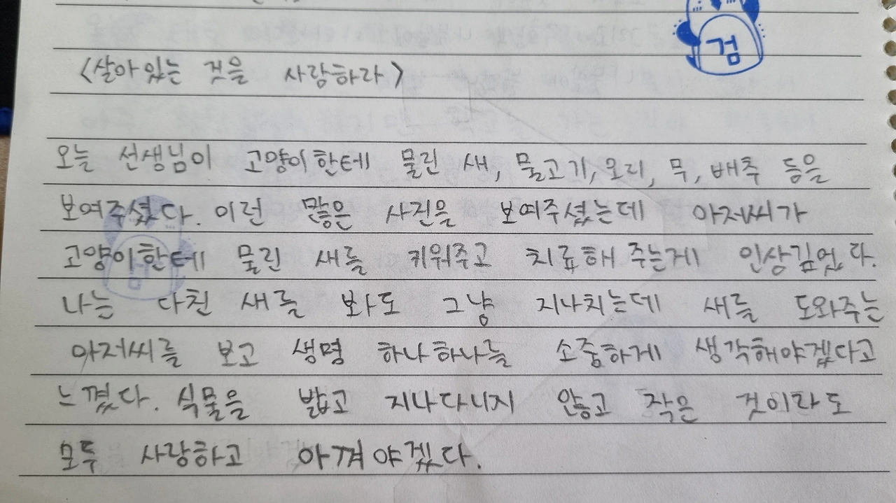 ‘살아있는 것들을 사랑하라’라는 주제로 글을 쓰면서 아이들 스스로 생명을 소중히 다루겠다는 결심을 이끌어 냈다.