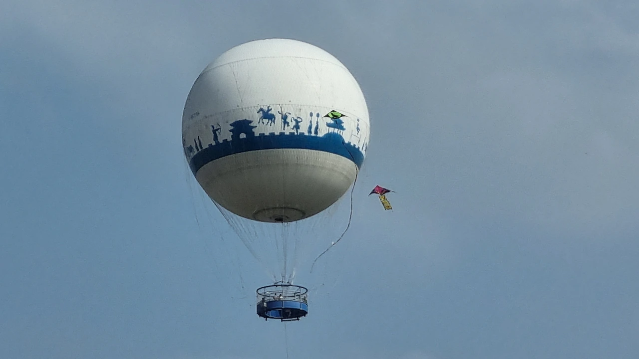 저 멀리 하늘에 우리 부부의 화성 일주를 축하해 주는 대형 풍선이 떠 있었다.