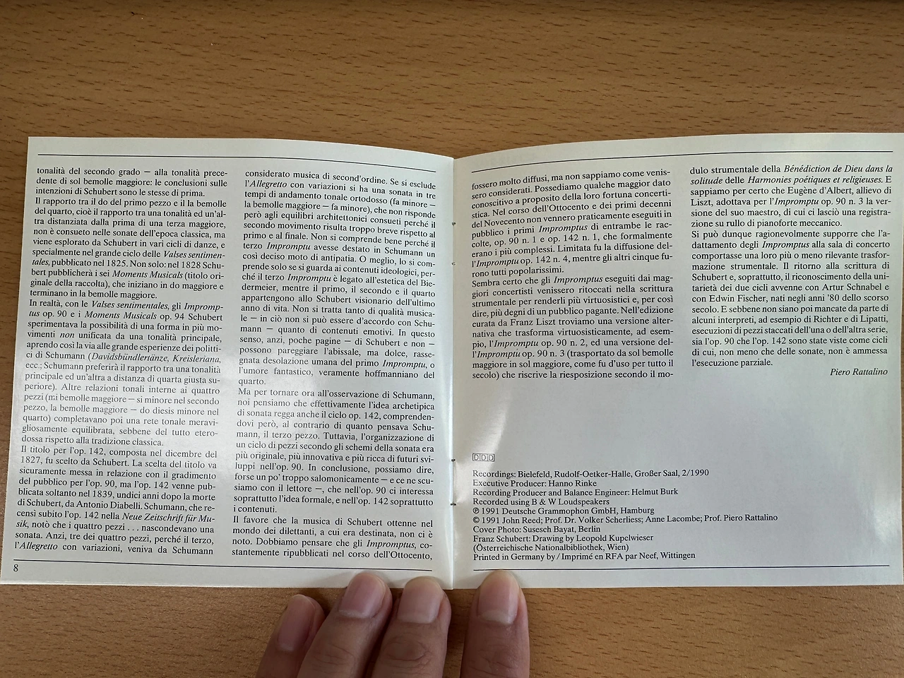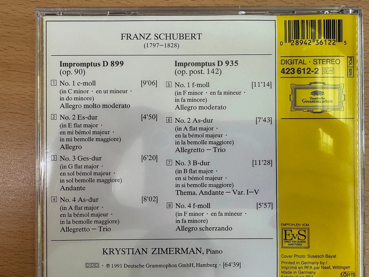 크리스티안 짐머만의 1990년 녹음은 이 곡이 왜 그렇게 위대한지 다시 깨닫게 해 줍니다. 그는 슈베르트의 음악을 단순히 ‘아름답게’ 연주하지 않습니다. 짐머만의 손끝에서는 한 음 한 음이 공기처럼 투명하면서도 무게를 가진 존재가 됩니다. 그의 연주는 감정을 억누르지 않지만, 결코 흐트러지지도 않습니다. 페달을 살짝 머금은 울림 속에서 선율은 마치 ‘숨 쉬는 시간’을 갖는 듯합니다. 그 시간 속에서 청자는 슈베르트가 느꼈던 고요한 절망, 그럼에도 살아 있으려는 희미한 의지를 함께 듣게 됩니다. 짐머만의 피아니즘은 ‘절제의 미학’입니다. 그는 감정을 숨기지 않되, 그것을 넘치게 하지 않습니다. 그의 연주는 고통조차 구조화된 아름다움으로 바꾸어 놓습니다. 그래서 그의 슈베르트는 듣는 이를 울리지 않고, 그저 오래도록 생각하게 만듭니다.