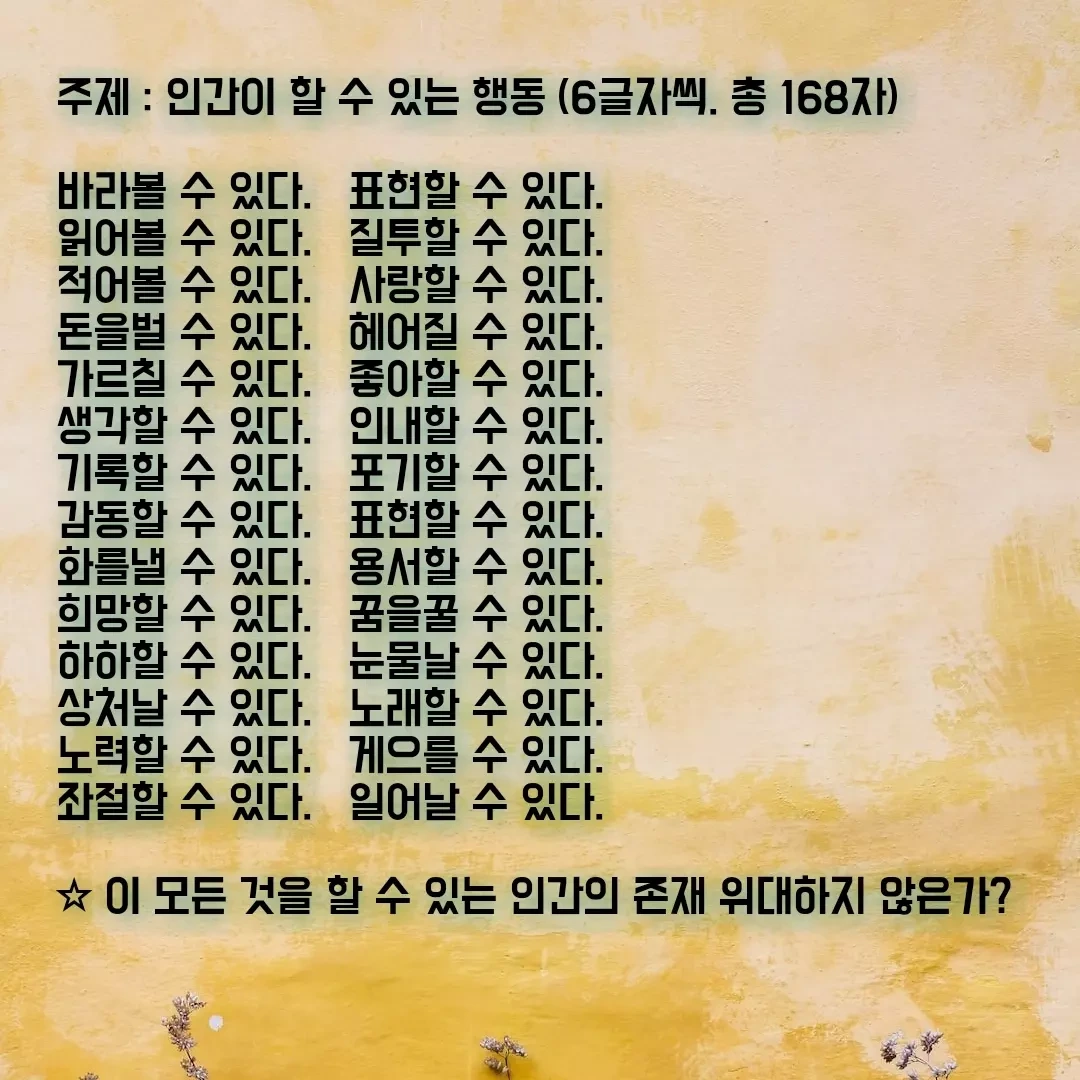 안녕하세요. 글쓰는 동안남입니다. 저는 네이버 블로그와 인스타그램에서 제가 쓰는 글들을 올리고 있습니다. 시. 수필. 스포츠. 추억. 음식 등 다양한 주제로 글을 적고 있습니다.