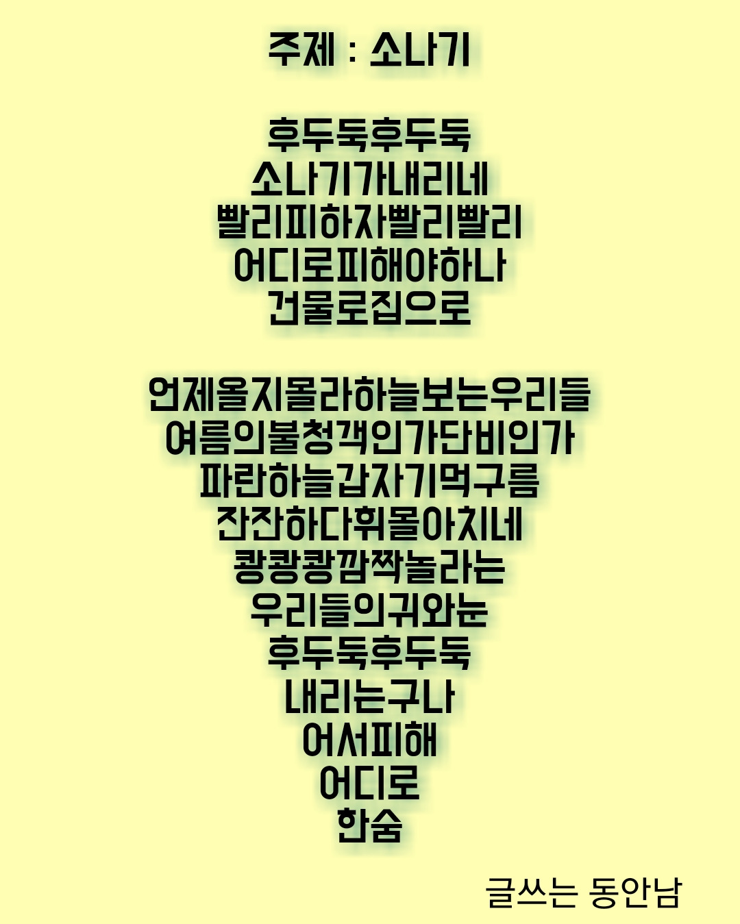 일기 예보에서 활용되는 소나기 기호 모양으로 시를 써보다.