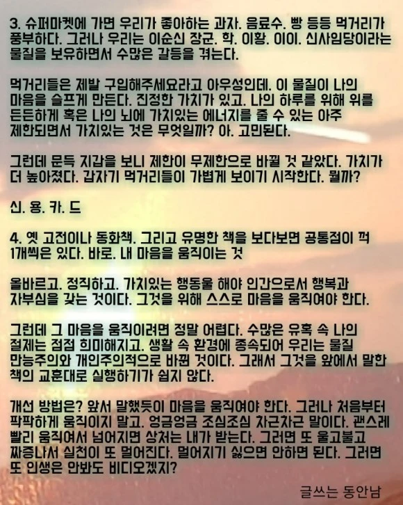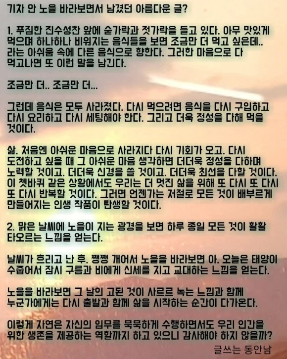 기차 안 노을을 바라보면서 남긴 4가지의 글
